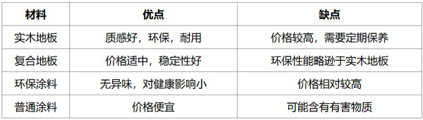 下面通过一个表格来对比不同材料在精装修中的优缺点: